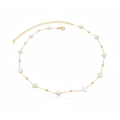 Colar choker com madre perola trevo e bolinhas diamantadas
